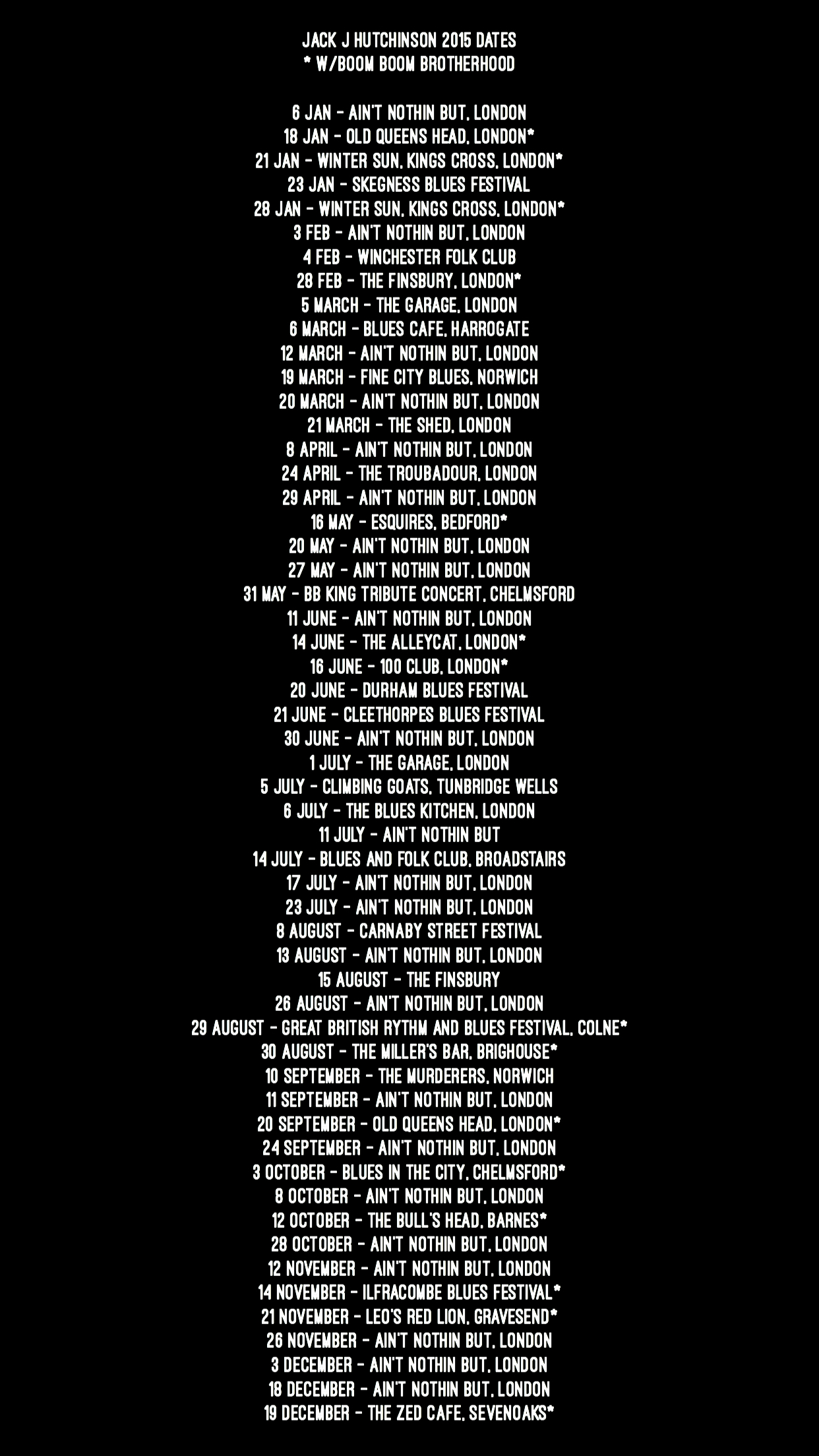 Jack J Hutchinson is pleased to announce a new series of dates throughout 2015. Touring in support of his critically acclaimed EP ‘Get It Back’, Hutchinson will be hitting the road throughout the year as he gears up to release a new album with his band the Boom Boom Brotherhood.