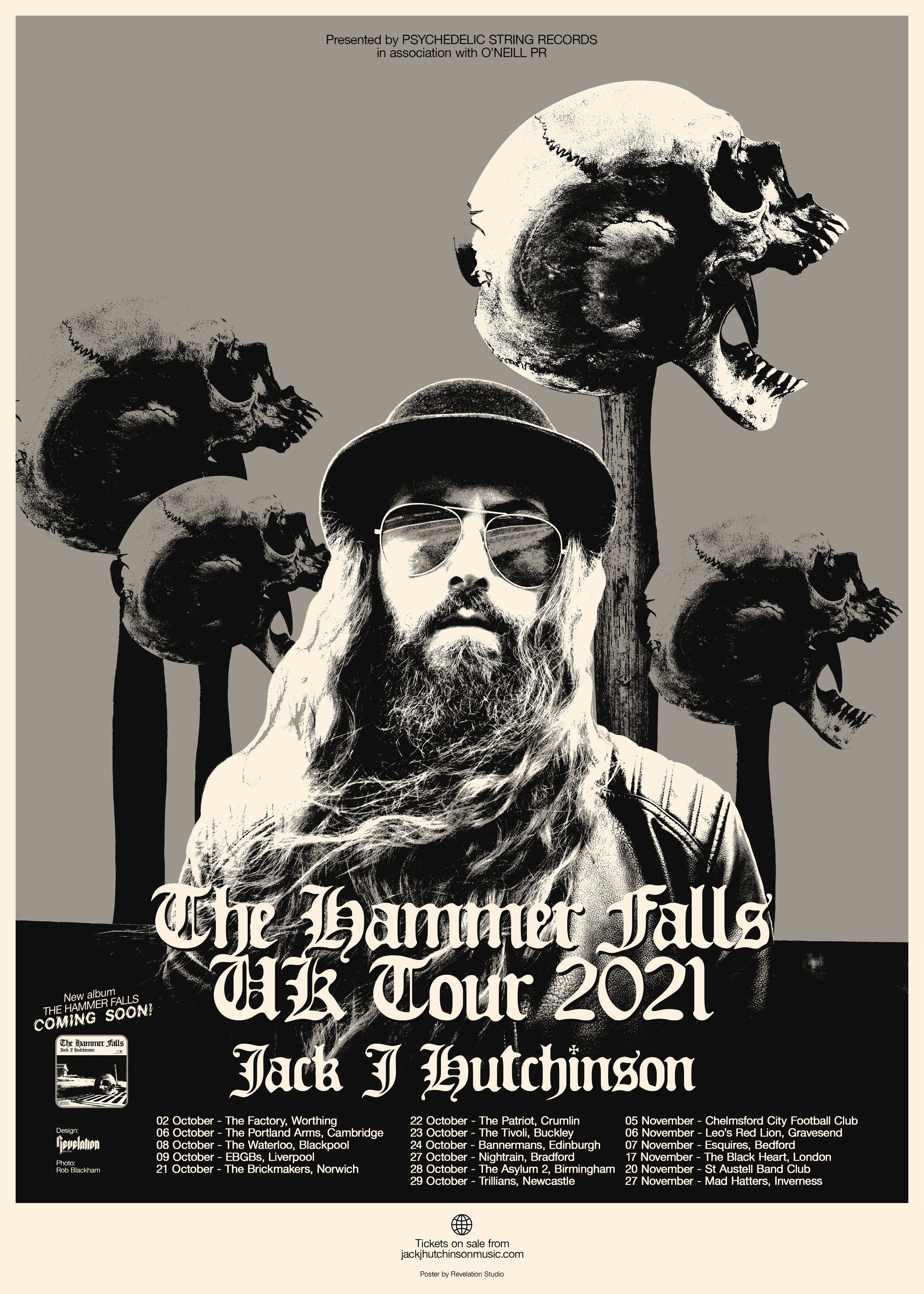 Jack J Hutchinson is pleased to announce his biggest UK headline tour to date. In October 2021 he will play 16 dates in support of his forthcoming studio album ‘The Hammer Falls’, which will be released to coincide with the tour.