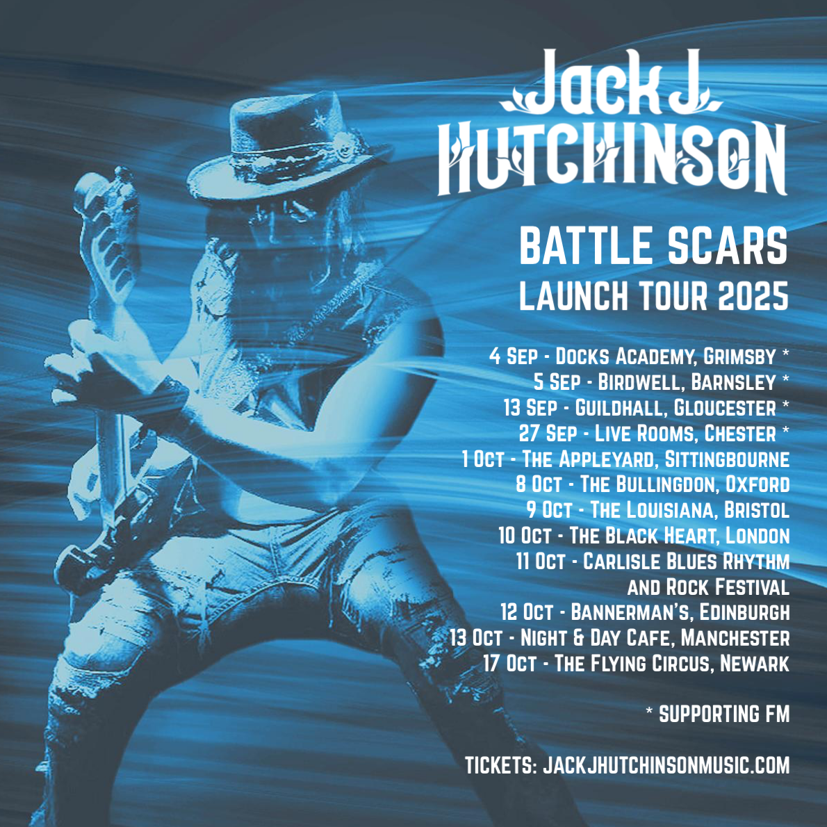 Fedora-wearing blues-rock guitarist Jack J Hutchinson will hit the road this autumn with his power trio in support of his brand new live album ‘Battle Scars’, which is due out early October.